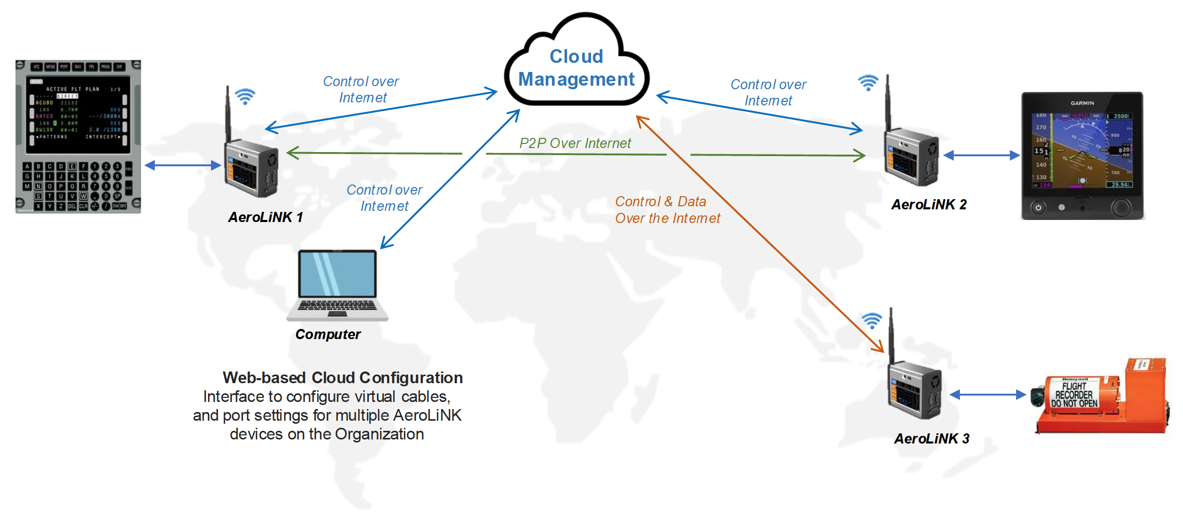 AeroLiNK solutions is based on Kable-Ends hardware which connects physically to your devices