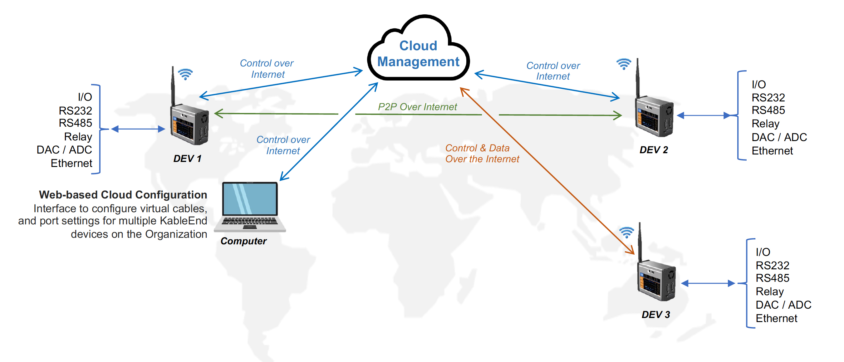 Using WirelessKable Cloud you can create your own virtual cables in between any ports of those Kable-Ends